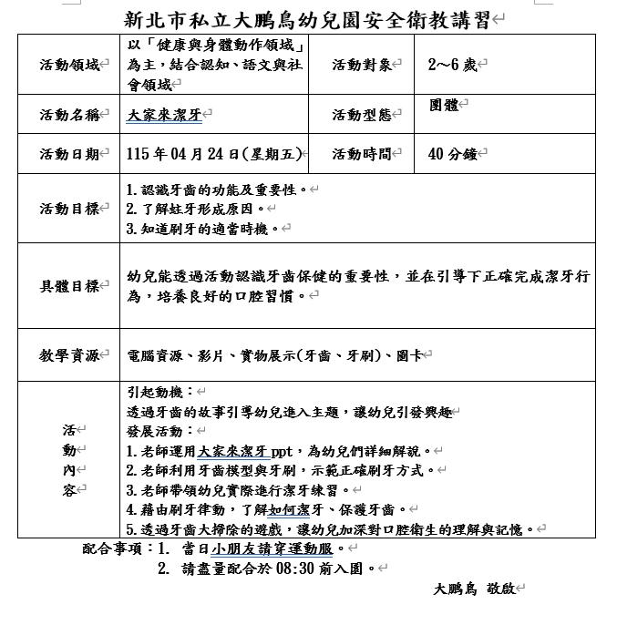 115年04月24日(星期五)安全衛教~大家來潔牙